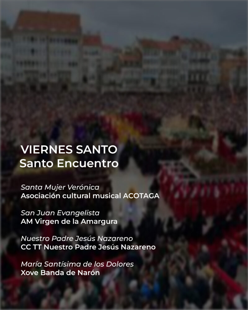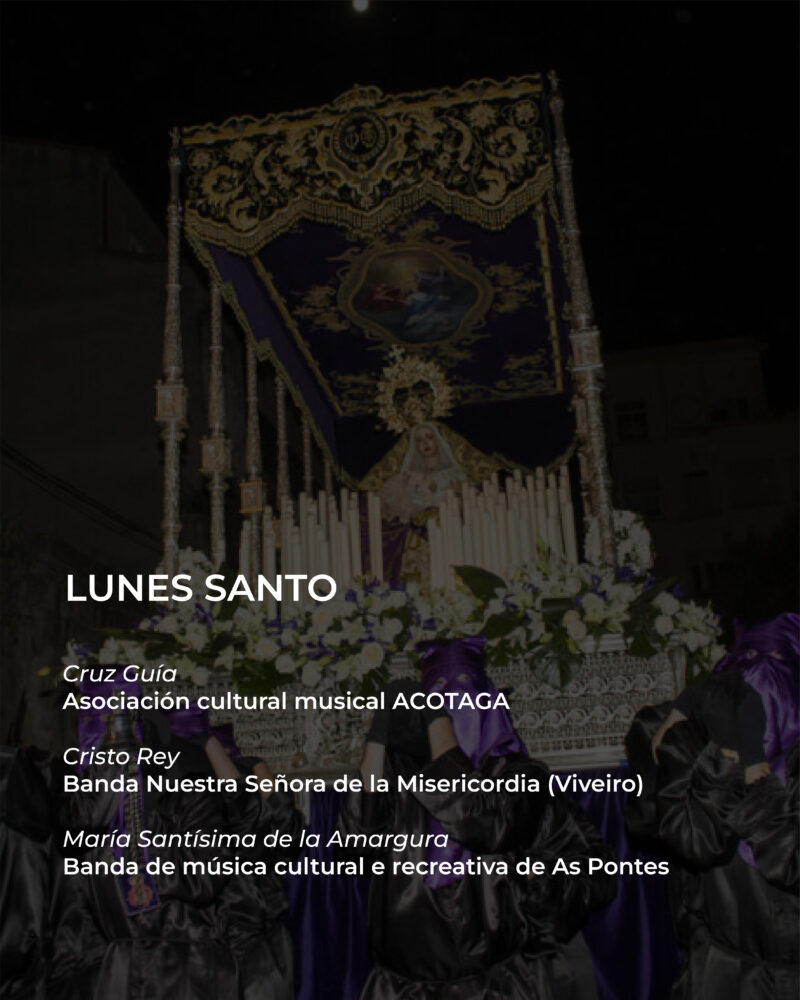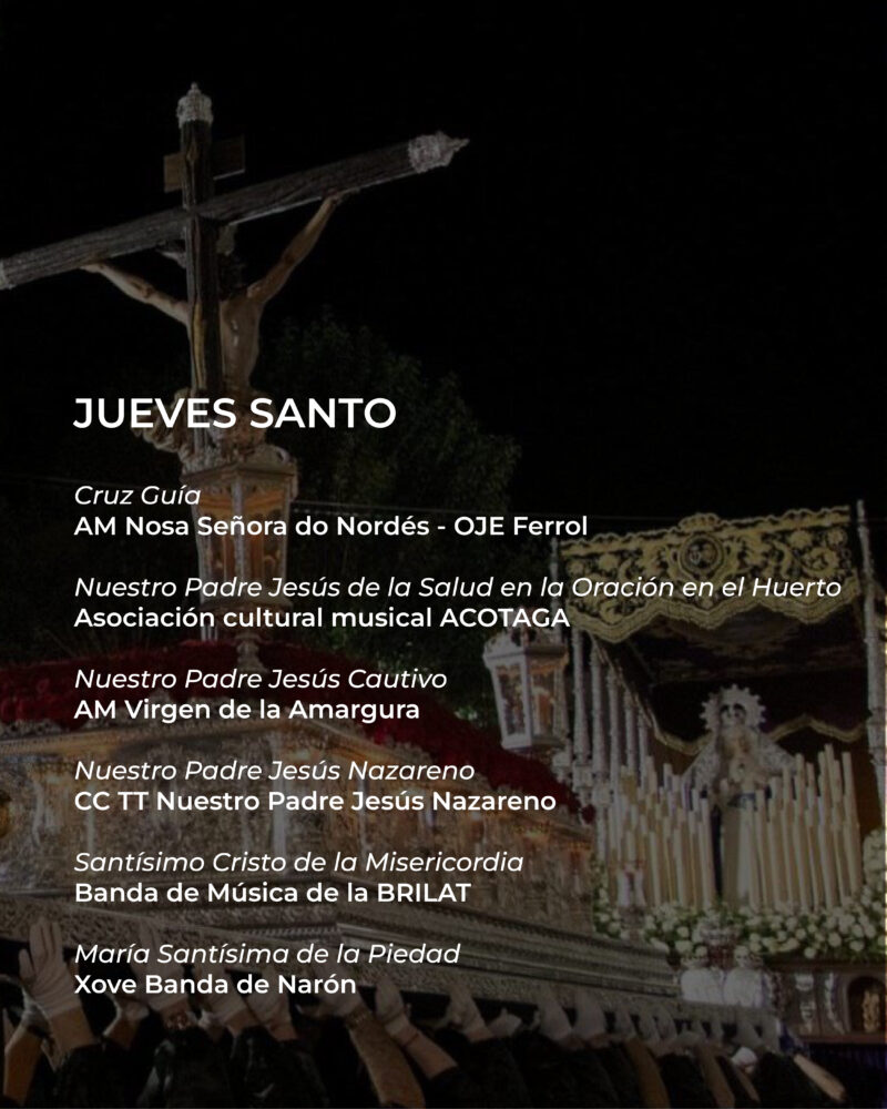 Tras la firma de todos los contratos con bandas, asociaciones y agrupaciones musicales, se establece el siguiente reparto para los distintos días de la Semana de Pasión.